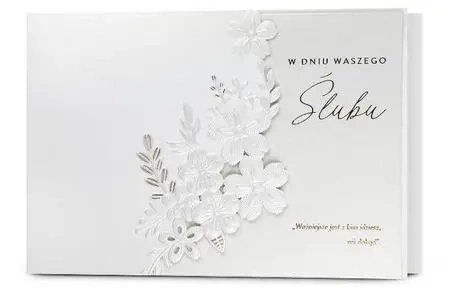 Kartka jest bogato i różnorodnie zdobiona (zależnie od wzoru: metaliczna folia, lakier perłowy,