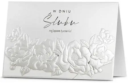 Kartka jest bogato i różnorodnie zdobiona (zależnie od wzoru: metaliczna folia, lakier perłowy,