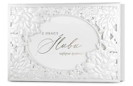 Kartka jest bogato i różnorodnie zdobiona (zależnie od wzoru: metaliczna folia, lakier perłowy,
