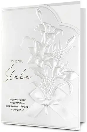 Kartka jest bogato i różnorodnie zdobiona (zależnie od wzoru: metaliczna folia, lakier perłowy,