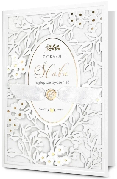 Kartka jest bogato i różnorodnie zdobiona (zależnie od wzoru: metaliczna folia, lakier perłowy,