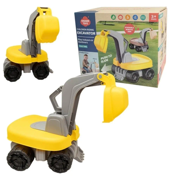Jeździk - koparka sterowane ręcznie ramię koparki, siedzisko obrotowe (360 stopni) Wymiary produktu: 63 x 30 x 49 cm Wymiary opakowania: 37.5 x 28 x 31.5 cm Wiek 3+