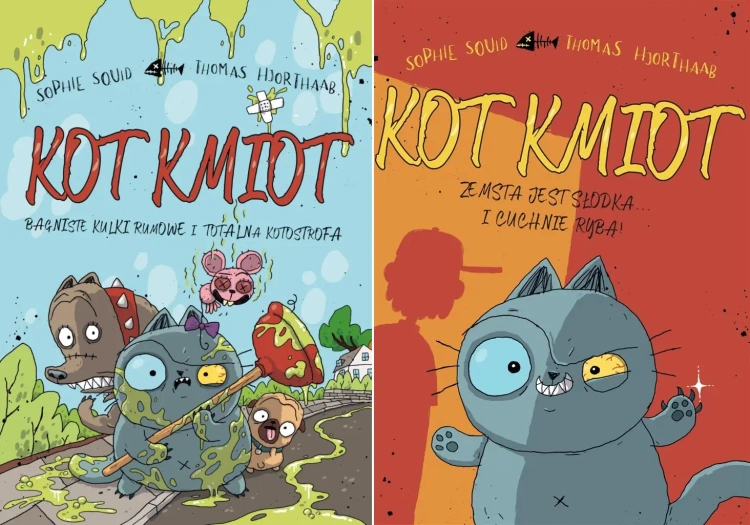 Komiks roku 2022 według duńskich bibliotek dla dzieci! Siema futrzaki i dwunożne gamonie! To ja, Kot Kmiot – mistrz wredoty i książę chaosu. Gość, który zawsze spada na cztery łapy i nigdy nie przepuści okazji, żeby wbić komuś pazur w… poczucie własnej wartości! Choć wszyscy sądzą (i słusznie), że myślę tylko o sobie, czasem zdarza mi się zachować, tak jakby, „szlachetnie”. A wszystko przez to, że Sivert wpadł w niezłe tarapaty. Cwaniak z sąsiedztwa, Ronny Rumowa Kulka, zrobił sobie z niego worek treningowy. A jeśli ktoś ma dręczyć Siverta, to tylko ja! Postanowiłem więc wkroczyć do akcji i pokazać, kto tu rządzi. A jakby tego było mało, na dzielni pojawił się nowy gracz – ślimak (nie)winniczek! Śliski typ, który uznał, że może zagarnąć mój teren i… moich ziomali! Żenada, mówię wam! Ale spokojnie. Wprowadzam w życie genialny plan totalnej KOTOstrofy. Będzie bagno – dosłownie i w przenośni. Ronny i ślimak dowiedzą się, że są granice cwaniakowania i że ja tu ustanawiam zasady gry. Bo umówmy się – to my, koty, rządzimy światem. Cała reszta żyje tylko po to, by napełniać nam miski i od czasu do czasu robić z siebie pośmiewisko, próbując zrozumieć nasz wielki plan.