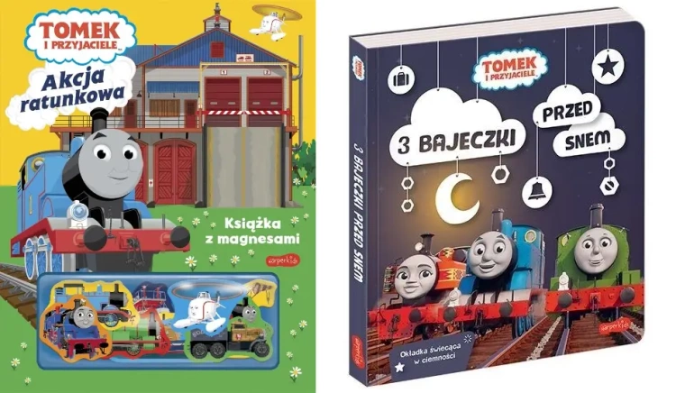 Tomek i przyjaciele. 3 bajeczki przed snem to idealna książeczka dla maluszka. Została wydana w okładce świecącej w ciemności, aby rytuał codziennego czytania z dzieckiem stał się magiczny, a wieczór spędzony na lekturze - jeszcze bardziej wyjątkowy. Okładka świeci, jeśli naświetlimy ją odpowiednio długo w świetle dziennym lub pod lampą, a efekt, jaki można podziwiać po zgaszeniu światła, jest niesamowity! Świecąca okładka to jednak nie wszystko. W książce znalazły się urocze, niepublikowane dotąd opowieści o przygodach parowozu Tomka i jego przyjaciół: Diesel i kaczuszki, Marudny Kuba oraz Użyteczna kolej. Wszystkie zostały napisane na podstawie odcinków 20 sezonu serialu i ilustrowane oryginalnymi klatkami z animacji. W tych zabawnych historiach Tomek odkrywa drugą twarz niezbyt sympatycznego na ogół Diesla, a Kuba uczy się śmiać sam z siebie. Lokomotywy kolei wąskotorowej mają okazję przekonać się o tym, że choć małe, są równie użyteczne jak wielkie maszyny. Każda z tych opowieści kończy się dobrze i jest doskonałym punktem wyjścia do rozmów z kilkulatkiem, a zaokrąglone rogi książki zapewnią bezpieczeństwo nawet podczas najbardziej szalonego czytania!