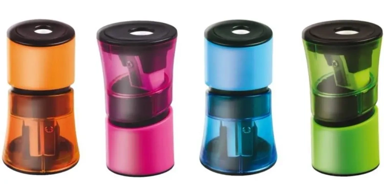 Temperówka o ergonomicznym kształcie z dwoma otworami różnej średnicy (11 mm, 8 mm). Wyposażona w stalowe ostrze oraz transparentny pojemnik na ścinki. Opakowanie: display 12 sztuk
