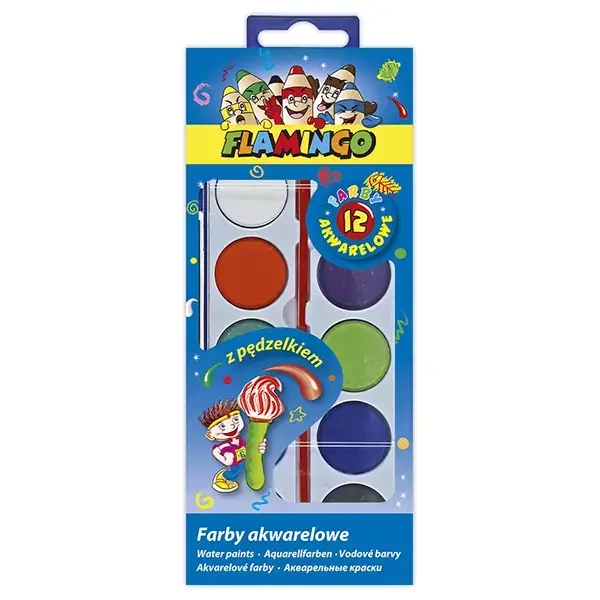 Farby akwarelowe 12 kolorów Flamingo