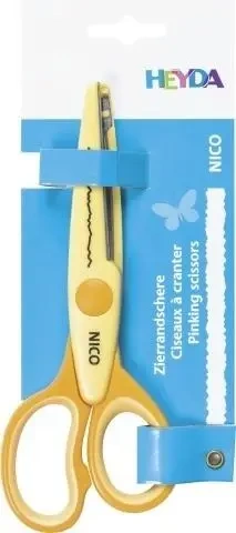 Ostrze powlekane tworzywem sztucznym. Nożyczki do wycinania wzorków w papierze. Długość 16,5 cm.