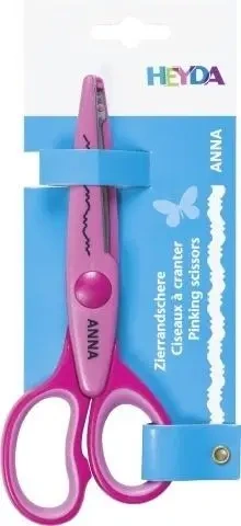 Ostrze powlekane tworzywem sztucznym. Nożyczki do wycinania wzorków w papierze. Długość 16,5 cm.