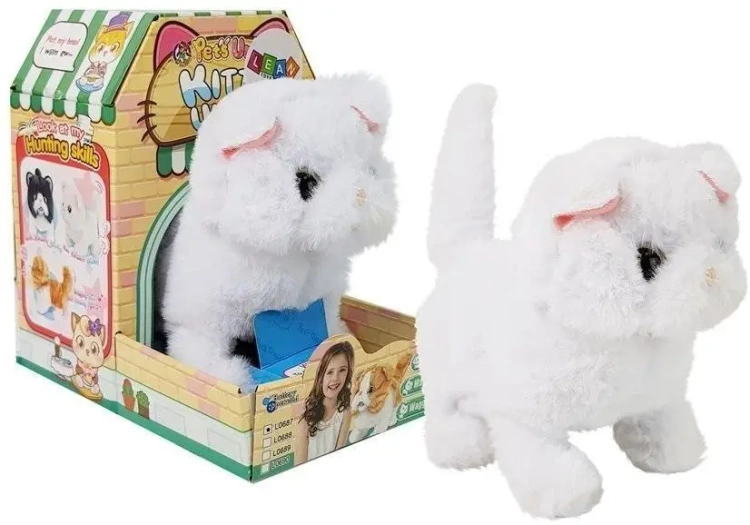 Przytulny kotek o dużych oczach ma wyjątkowe wdzięki, które przyciągają uwagę. Spaceruje i potrafi zwiększyć tempo ruchu, aby iść szybciej. Po pogłaskaniu po głowie otwiera pyszczek, rusza ogonkiem oraz wydaje dźwięki. Stanie się wyjątkowym przyjacielem dla Twojego dziecka.