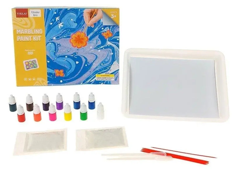 zestaw artystyczny, malowanie na wodzie (marbling), z zestawem farb i patyczków;