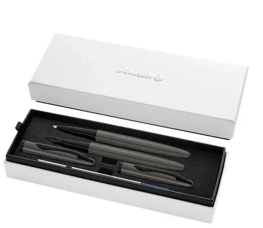 Spójny design i eleganckie wykończenie dla miłośników harmonii i stylu Pióro wieczne ze stalówką M zapewnia płynne i precyzyjne pisanie Pióro kulkowe na naboje atramentowe czyste i wygodne w obsłudze Oba przybory wyposażone w sprężynowy klips w kształcie dziobu pelikana Znakomite wyważenie zwiększa komfort użytkowania Metalowe elementy w 100% nadające się do recyklingu ekologiczny wybór