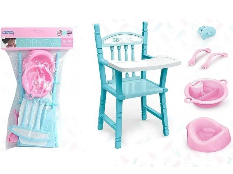 Zestaw akcesoriów dla lalek bobasów z krzesełkiem, wymiary 40x23cm, wykonany z PVC