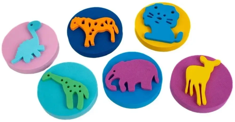 znaczki dziecięce z motywami zwierzęcymi, łatwe w obsłudze, średnica nadruku ok. 5 cm, 6 różnych motywów w 6 kolorach