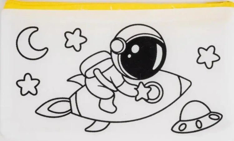 tekstylne etui z szablonem do malowania, z zamkiem błyskawicznym,, wymiary piórnika 21,5 x 13 cm