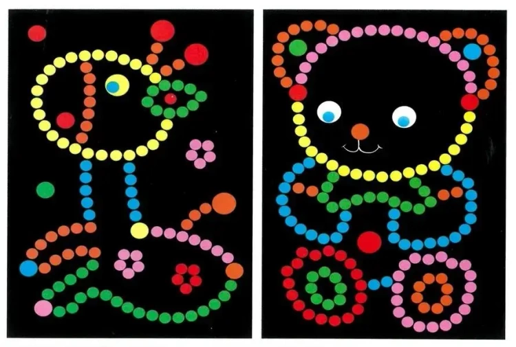 kreatywny zestaw do stworzenia pięknego obrazku, zestaw zawiera: szablon 17,5 x 21 cm, kolorowe kropki, w opakowaniu 6 szt., różne motywy