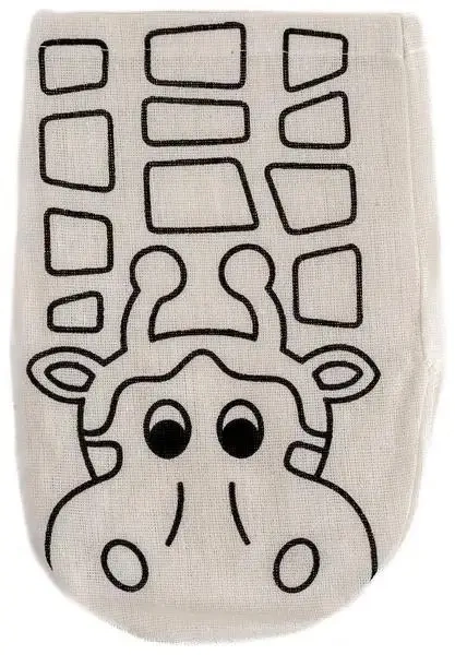 płócienna kukiełka ze wzorem do malowania markerami akrylowymi, wymiary 12 x 20 cm