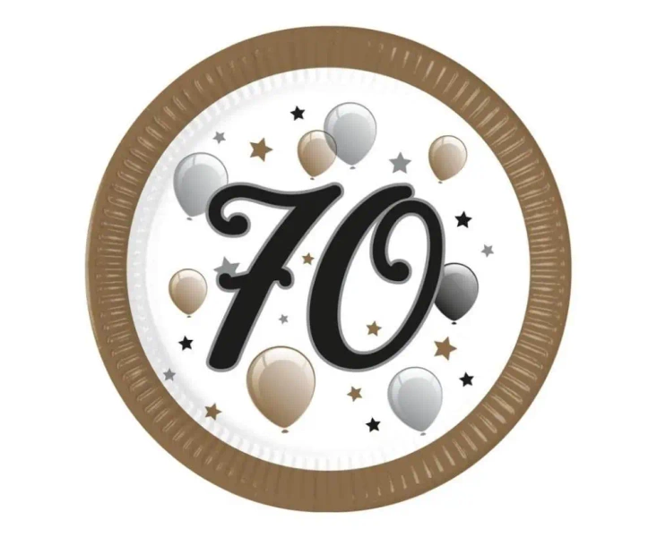 Talerzyki papierowe 70 urodziny FSC 23cm 8szt - Godan