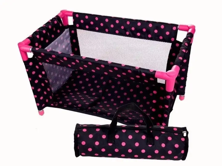 Łóżeczko-kojec dla lalek czarny w różowe groszki - MarioToys