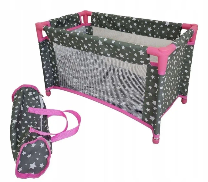 Łóżeczko-kojec dla lalek szary w białe gwiazdki - MarioToys