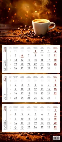 Kalendarz 2026 ścienny trójdzielny Kawa - Wydawnictwo Wokół nas