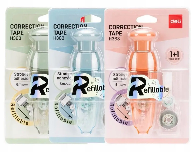 DELI Korektor w taśmie 5mmx6m + dodatkowy wkład mix kolorów