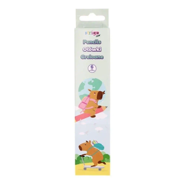 Ołówki z gumką HB Kapibara pastelowe 6szt - Strigo