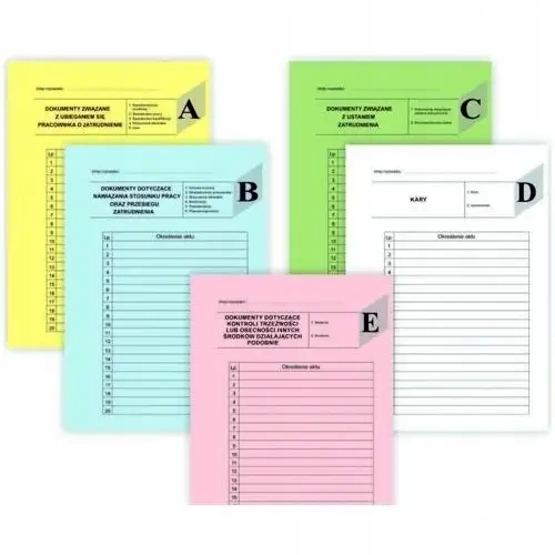Praktyczne przekładki do akt osobowych w formacie A4, wykonane z papieru, ułatwiają uporządkowaną i zgodną z przepisami organizację dokumentacji pracowniczej. Idealne do biur, urzędów i firm.