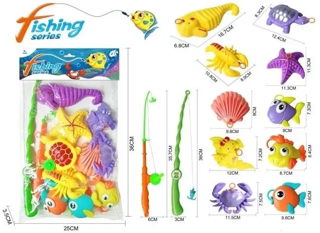 Przenieś się w fascynujący podwodny świat z naszym zestawem zabawek wędkarskich "Fishing Series", stworzonym z myślą o małych miłośnikach wodnych przygód! Ten bogaty zestaw zawiera dwie wędki w żywych kolorach - pomarańczową i zieloną - idealnie dopasowane do małych rączek, co ułatwia jednoczesną zabawę dwójki dzieci lub rodzica z dzieckiem. W skład zestawu wchodzi szeroka gama uroczych, jaskrawo kolorowych stworzeń morskich, takich jak rybki o różnych kształtach i kolorach, majestatyczne koniki morskie, tajemnicze kraby, piękne rozgwiazdy, a także muszelki i żółwie. Każda figurka posiada mały metalowy element, który umożliwia łatwe złapanie jej za pomocą magnesu umieszczonego na końcu wędki, co doskonale rozwija precyzję i koordynację ręka-oko. Zestaw jest idealny do zabawy w wannie, brodziku, basenie, a nawet na sucho, symulując wędkowanie na dywanie. Dzięki swojej wszechstronności i atrakcyjności wizualnej, "Fishing Series" zapewni wiele godzin kreatywnej i edukacyjnej zabawy, jednocześnie ucząc cierpliwości i koncentracji. Produkt jest bezpieczny dla dzieci powyżej 3. roku życia. Całość zapakowana jest w praktyczne opakowanie, idealne do przechowywania i transportu.