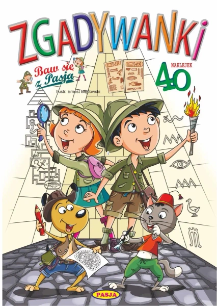 Książka edukacyjna z zadaniami logicznymi (łamigłówki, zgadywanki, zagadki), kolorowanie. Format A4, objętość 40 str. + 2 str. naklejek na papierze samoprzylepnym. Okładka miękka klejona.