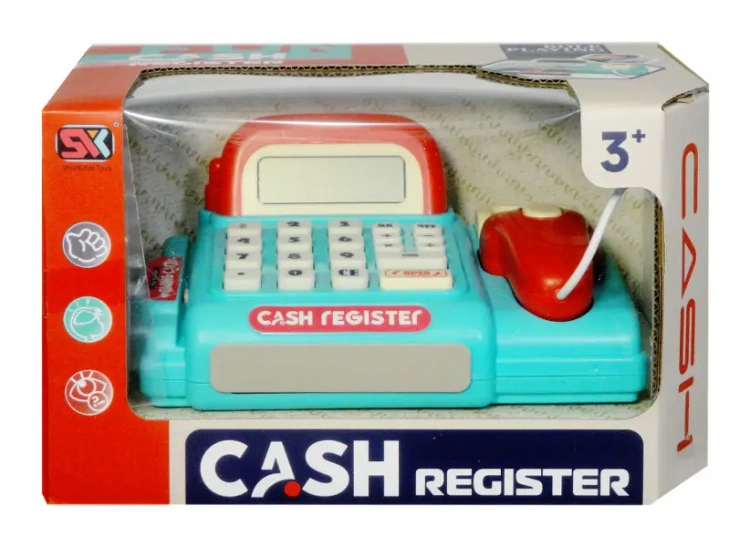 Zabawka kasa sklepowa z przyciskami, otwieraną szufladą i skanerem. Zestaw zachęca do zabawy w sklep. Kasa działa na baterie typu AA. Baterie nie są załączone do zabawki. Kasa zapakowana w kartonowe pudełko. Podane wymiary są wymiarami opakowania.