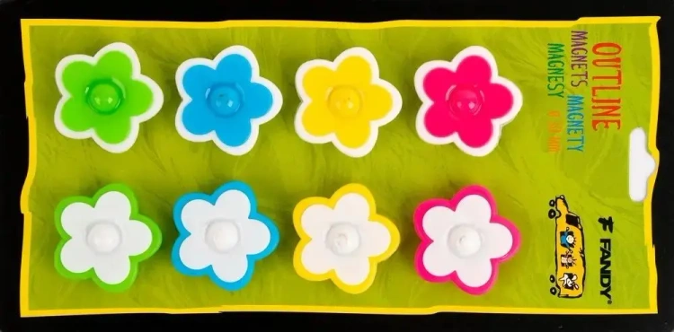 8 różnokolorowych magnesów, które rozjaśnią każdą tablicę, średnica magnesu 3 cm