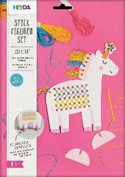 Zestaw do wyszywania zawiera tekturową figurkę z dziurkami, plastikowa igłę oraz 4 kolorowe muliny. .