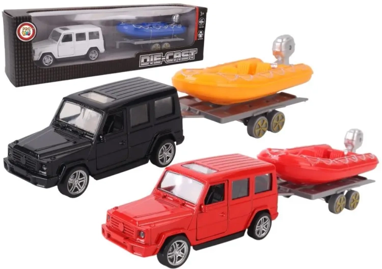 Samochód z łodzią pontonową na przyczepie mix - Pro Kids