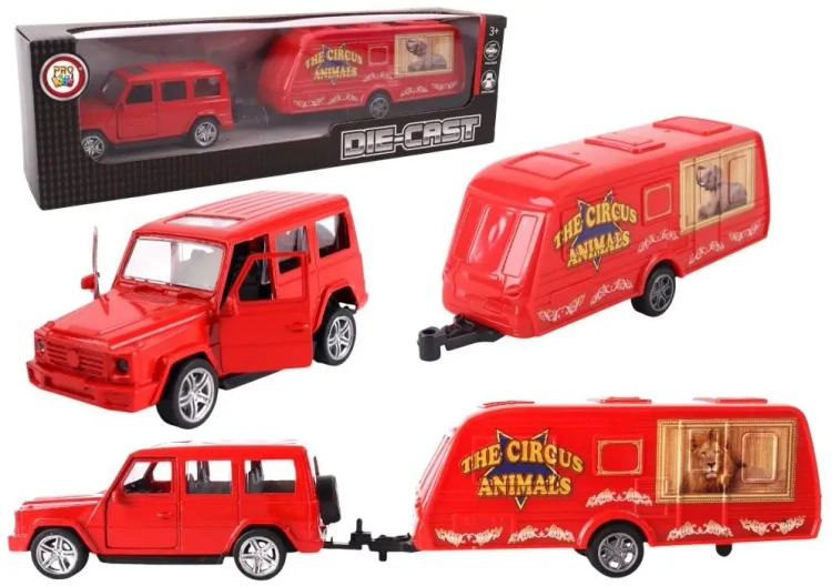 Wyjątkowy zestaw Samochód z Przyczepą Cyrkową z serii Pro Kids Die-Cast, który przeniesie Twoje dziecko w świat podróżującego cyrku pełnego magii, zwierząt i niezapomnianych emocji! Terenowy samochód w ognistej czerwieni, inspirowany klasycznymi modelami SUV, łączy w sobie siłę i elegancję. Dzięki otwieranym drzwiom oraz realistycznemu wnętrzu, mały kierowca może poczuć się jak prawdziwy organizator cyrkowego tourne.