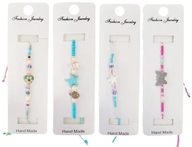 Odkryj nasz wyjątkowe ręcznie robione bransoletki, które wniosą odrobinę koloru i fantazji do Twojej garderoby. Każda bransoletka jest starannie wykonana z dbałością o detale, łącząc różnorodne koraliki w pastelowych i żywych odcieniach z urokliwymi zawieszkami - od serduszek, przez morskie muszelki i rozgwiazdy, aż po delikatne motyle. Te unikalne wzory sprawiają, że każda bransoletka jest inna, a zarazem idealnie pasuje do reszty zestawu. Sprzedawane w opakowaniu zbiorczym 12 sztuk, doskonale sprawdzą się jako drobne upominki, uzupełnienie wakacyjnych stylizacji czy po prostu jako radosny akcent na co dzień. Cena dotyczy jednej sztuki.