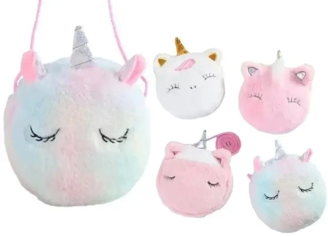 Odkryj świat fantazji z naszą uroczą pluszową torebką dla dziewczynek! Ta wyjątkowa torebka, w kształcie milutkiego jednorożca, to idealny dodatek dla małych marzycielek. Wykonana z niezwykle miękkiego i przyjemnego w dotyku pluszu, zapewnia komfort noszenia i staje się ulubionym towarzyszem każdej przygody. Dostępna w różnorodnych wzorach i pastelowych odcieniach, takich jak tęczowy, biały czy różowy, z uśmiechniętymi pyszczkami i brokatowymi rogami, z pewnością podbije serce każdej małej damy. Torebka jest praktyczna, pomieści drobne skarby, takie jak spinki, gumki do włosów czy ulubione figurki. Posiada wygodny, regulowany pasek, dzięki czemu można ją nosić na ramieniu lub przez ciało. To doskonały pomysł na prezent na urodziny, Mikołajki czy inną okazję. Zapewnij swojej córce odrobinę magii z naszą pluszową torebką jednorożcem!
