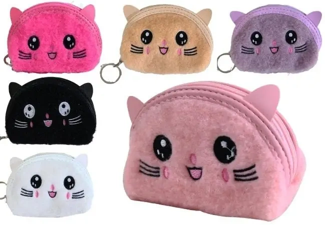 Odkryj nasz uroczy portfelik w kształcie kotka, który zachwyca miękkim pluszowym materiałem i słodkim designem. Ten mały, ale pojemny portfelik jest idealny do przechowywania monet, banknotów złożonych na pół, a nawet drobnych słodkości. Zintegrowany brelok pozwala na łatwe przypięcie go do kluczy, plecaka czy torebki, zapewniając, że Twoje drobiazgi będą zawsze pod ręką. Dostępny w różnorodnych, żywych kolorach, od klasycznej czerni i bieli, po radosny róż, beż i lawendę, każdy znajdzie coś dla siebie. To fantastyczny pomysł na prezent dla dzieci i dorosłych miłośników kotów, którzy cenią sobie zarówno funkcjonalność, jak i uroczy styl.