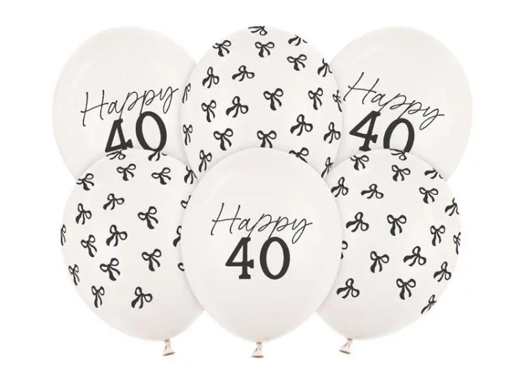 Balony Strong ''40'' w kolorze Pastel Off-white z nadrukiem, średnica ok. 30 cm.(1 op. / 6 szt.)