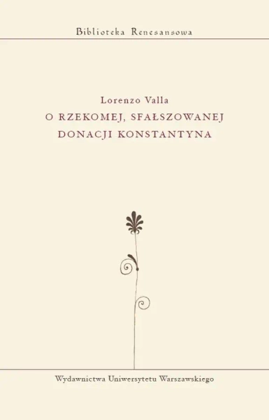 Przekład łacińskojęzycznego traktatu Lorenzo Valli z 1440 roku. Autor zajmuje się kwestią autentyczności tak zwanej Donacji Konstantyna, dokumentu pochodzącego rzekomo od cesarza Konstantyna Wielkiego, a w rzeczywistości powstałego jak się go obecnie datuje na przełomie VIII i IX wieku. Dokument ten utrzymuje, że Konstantyn podarował Kościołowi rzymskiemu całą zachodnią część Cesarstwa Rzymskiego. Traktat ma formę mowy w obronie prawdy, Valla posługuje się w nim całym wachlarzem argumentów z zakresu prawa, historii i historiografii, religii, polityki itp., żeby wykazać niemożliwość przeprowadzenia takiej darowizny.