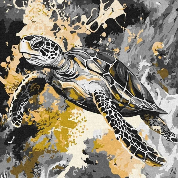 Malowanie po numerach - Złoty żółw metal 40x40cm - Ideyka