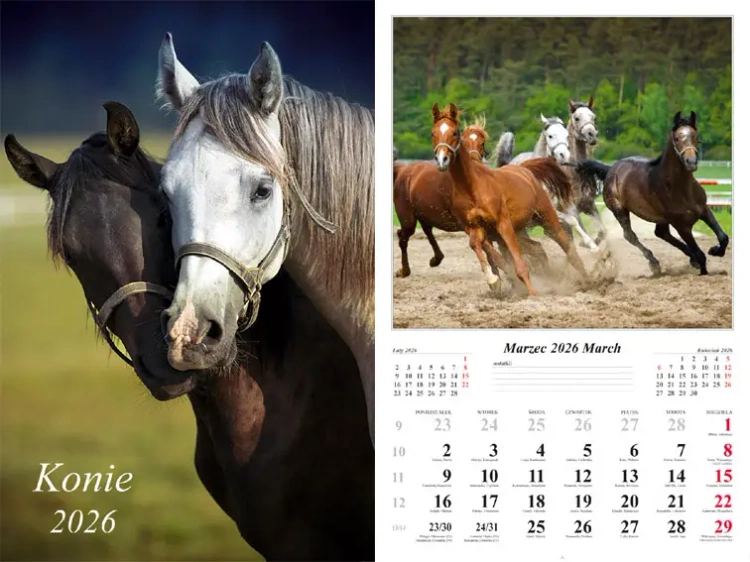 Kalendarz 2026 ścienny Konie - praca zbiorowa