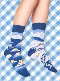 ZIMNE NÓŻKI to zmora zmarzluchów i gości u cioci na imieninach. Z myślą o nich stworzyliśmy śmieszne skarpetki przywołujące na myśl mroźne zimy w czasach PRL-u i tamte prywatki.