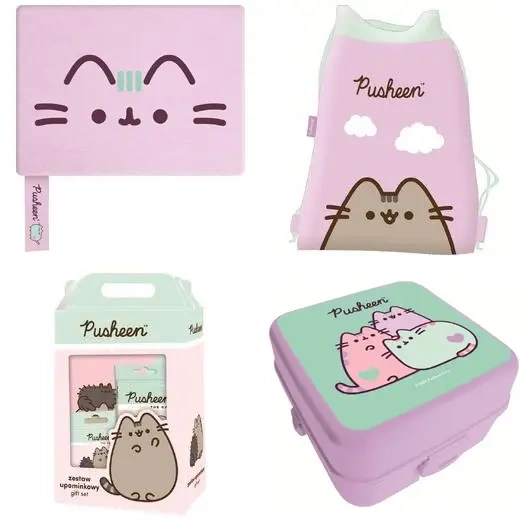 Plecak szkolny Pusheen + piórnik + notes + teczka + wyprawka+ worek +bidon