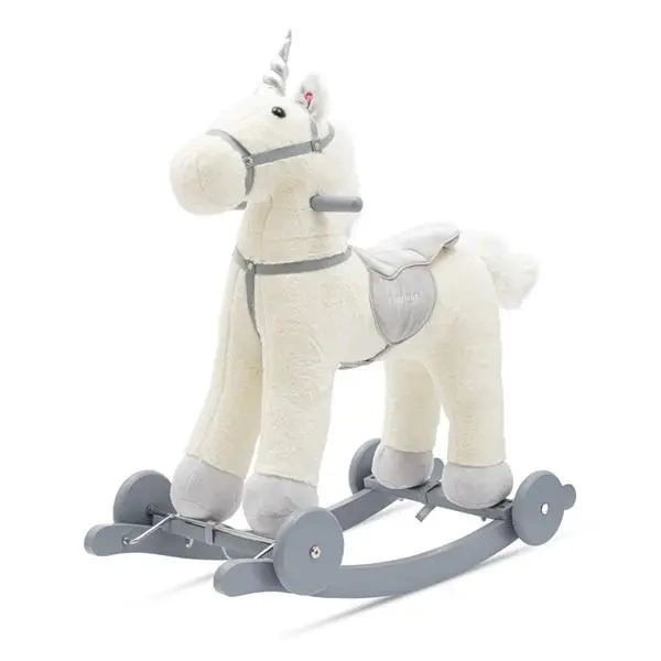 Koń na biegunach z melodią i kółkami biały - Baby Mix