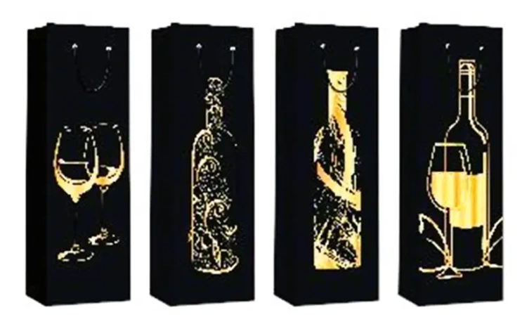 Torebki prezentowe WK 22354 na butelkę mix wzorów 12 sztuk