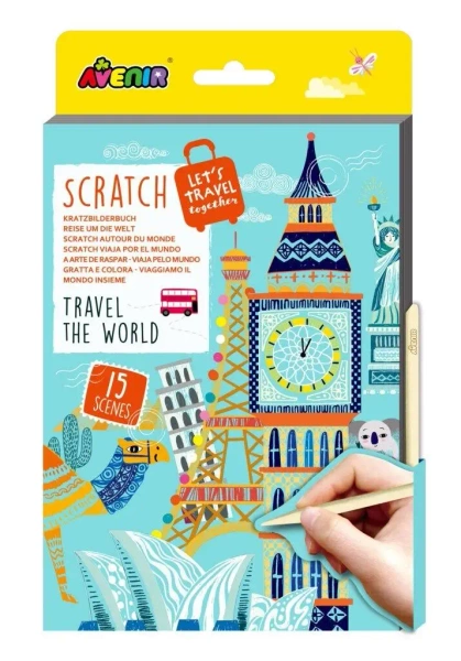 Jeśli Twój mały artysta uwielbia drapać (dzieła sztuki, nie meble), zeszyt do wydrapywań Avenir - Podróże po świecie, zapewni jego kreatywnym rączkom zajęcie na wiele godzin! To nie jest zwykły notatnik każda strona ujawnia eksplozję żywych kolorów, dzięki czemu każde dzieło sztuki jest zachwycającą niespodzianką. Ta książeczka w formacie A5, idealnie dopasowana do potrzeb małych odkrywców, jest pełna misternych, wstępnie zaprojektowanych linii rysunkowych, które tylko czekają na odkrycie. Dla dzieci powyżej 3-go roku życia. Zawiera: 15 stron do kratywnego wykorzystania, drewniany rysik.