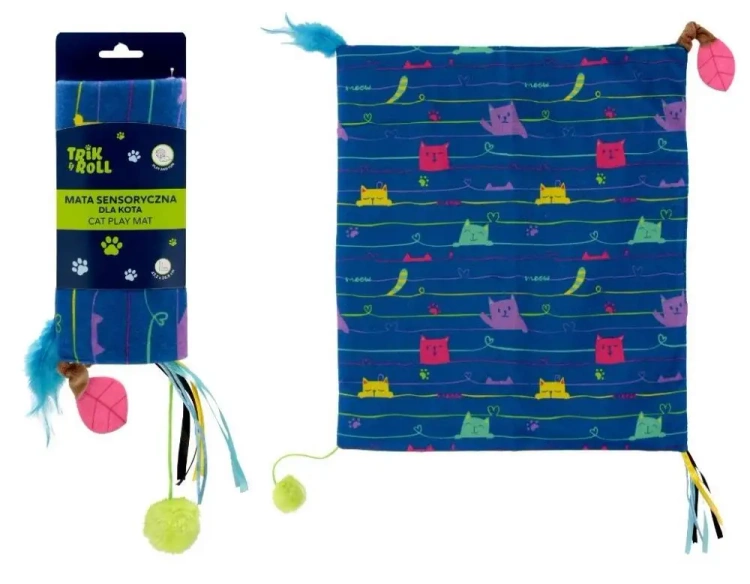 Mata sensoryczna dla kota zabawa, stymulacja i relaks w jednym! Zaspokój naturalne instynkty swojego kota dzięki macie sensorycznej, która łączy zabawę z treningiem umysłowym! Ta innowacyjna zabawka pobudza ciekawość, rozwija zmysły i zachęca do aktywności. Dzięki różnorodnym teksturom, dodatkami umieszczonymi i przyczepionymi do maty, kot może drapać, węszyć, podgryzać, łapać? dokładnie tak, jak lubi najbardziej. Wieloelementowa struktura-różne materiały, frędzle, pluszowe piłeczki, szeleszczący materiał, stymulacja umysłowa i sensoryczna wspomaga koncentrację i rozwój zmysłów, łatwa do czyszczenia-możliwość prania ręcznego, bezpieczna i trwała-wykonana z materiałów przyjaznych zwierzętom. Zajmuje kota na dłużej i zapobiega nudzie, pomaga ograniczać stres i nadpobudliwość, idealna dla kotów w każdym wieku od kociaka po dorosłego kota, świetna alternatywa dla klasycznych zabawek dla pupilów.