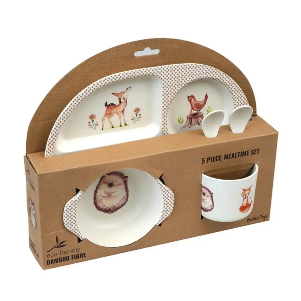 Zestaw Naczyń Dziecięcych z Melaminy, 5 el., Wood Friends