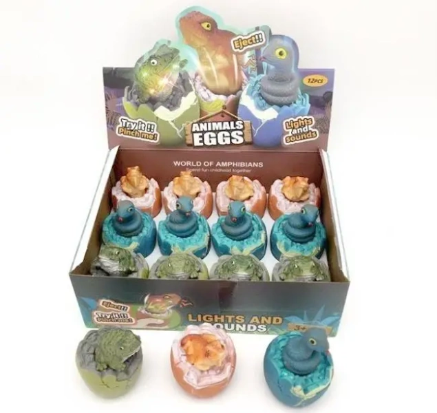 Odkryj świat prehistorycznej zabawy z naszymi gniotkami zwierzątkami w jajkach! Te niezwykłe zabawki to połączenie sensorycznej przyjemności gniotka z interaktywnymi efektami dźwiękowymi, które zachwycą każde dziecko. Każdy gniotek, przedstawiający sympatyczne zwierzę, ukryty jest w fantazyjnym, popękanym jajku, imitującym wykluwanie. Wystarczy go ścisnąć, aby usłyszeć zabawny dźwięk i doświadczyć przyjemnego uczucia miękkości. Zestawienie różnych gatunków zwierząt w jajkach zapewnia element niespodzianki przy każdym otwarciu. Gniotki wykonane są z bezpiecznych i trwałych materiałów, idealnych do małych rączek. Produkt sprzedawany jest w wygodnym opakowaniu zbiorczym zawierającym 12 sztuk, co sprawia, że jest doskonałym wyborem na prezent dla grup dzieci, upominki urodzinowe lub jako atrakcyjny dodatek do asortymentu sklepu. Należy pamiętać, że podana cena dotyczy jednej sztuki gniotka. Zanurz się w "Świecie Płazów", gdzie zabawa nigdy się nie kończy!