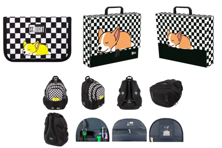 Plecak szkolny CORGI + piórnik + worek + teczka St.Right